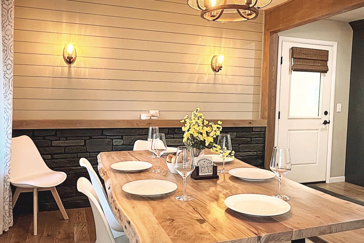Close Whitefish Ski Resort, 2 Glacier Natl Park, Flathead Lake. Walk to Kalispell Historic District, walk to coffee/dining/shopping. Home has: 2 KITCHENS, 2 living rooms, 2 fireplaces, & 2 washer/dryers. Perfect location between between Whitefish Ski Resort (Big Mtn), & Kalispell Town Center! Newly renovated home is your next holiday skiing getaway. JACUZZI TUB in master bath, outdoor patio on 1.5 acres of private escape. Modern style homebase for all of your summer fun and Montana adventures!