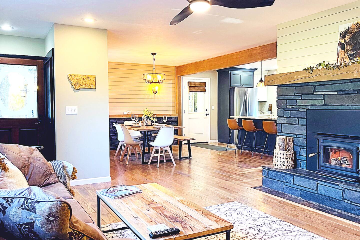 Your Glacier and Whitefish Skiers Winter base-camp! Take advantage of everything Whitefish Ski Resort and Glacier Natl Park country has to offer! Skiing, sledding, making snowmen and snow angels! This home is perfect for multiple families with kids or a fun friendly getaway. After a day of skiing or sledding at Whitefish Ski Resort (Formally "Big Mountain"), warm up and relax by the wood burning fireplace for a fun, entertaining movie night. Centrally Located: • Historic Downtown Kalispell is within a short walking distance (less than 1 mile to many shops and eateries) • Flathead Lake is 10 miles away • Walk just 1/2 mile to Historic Conrad Mansion • Whitefish Ski Resort (Big Mountain) is 23 miles • the town of Whitefish is 15 miles away • Glacier Natl Park is 32 miles away You will love being so close to Flathead Lake, Whitefish Lake, Glacier National Park, Whitefish Ski Resort, Nordic Skiing, Sledding, Downtown Whitefish, and Historic Downtown Kalispell! Sleeping Arrangements: • Upstairs Bedroom #1 - 1 King bed • Upstairs Bedroom #2 - 1 Queen bed • Upstairs Bedroom #3 - 2 single beds • Downstairs Bedroom #4 - 1 Queen bed • Upstairs Living Rm #1 - 1 Sofa Bed • Downstairs Living Rm #2 - 1 Fold out Futon Bed We worked hard for this little place in Montana paradise and are sharing it at a reasonable price for guests. We expect that you respect as much as we do, and trust that you will leave it clean, less the towels and linens. The main room features large comfortable couches, a large wood-burning fireplace, and a large picture window showcasing the beautiful views. The open floor plan leads you from the living space into the dining area comfortably seating 6 and a 3-person kitchen island. The bright and roomy kitchen is highlighted by the gas range and oven, large refrigerator, and microwave. There is also a small dining area downstairs that is perfect for remote workers or private dining. Downstairs there is an additional 1 bedroom guesthouse, complete with it's own kitchenette, living room, fireplace, full bathroom, laundry, and bedroom! Parking - There is plenty of room for parking in the driveway (3 cars) and 1 space available for guests to park a car in the garage. Owners' car is stored in the other space in garage. You have full access to home. 1 space in the garage is for guests as well as the entire driveway, the owners of the home store a car in the other garage parking space. Self-Check-ins - With self-check-in you won’t need to interact with anyone face-to-face. A place to work or have meetings - This is the perfect place to come and enjoy everything the area of Kalispell/Whitefish/Glacier Natl Park has to offer. Is your office closed? - If you’re unable to go into the office, our home is equipped with high-speed WiFi and has plenty of room for you to work comfortably. The private home is situated in a quiet, family-friendly, neighborhood surrounded by tall pine trees and a LARGE surrounding yard. Location, location, location! The spacious 4 bedroom home is located close to historic downtown Kalispell. Enter into a relaxing living space with plenty of couch space & cable TV. You will have a fully stocked upstairs kitchen as well as a downstairs guest kitchenette for preparing meals Heated garage with boot dryer - the perfect place to dry your gear after a fun day skiing and playing in the snow! Professionally cleaned - Our staff has been trained in proper disinfection techniques and will deep clean your home before and after your stay. Due to family members with life-threatening allergies, who regularly use this home, we are required to keep the vacation home rental allergen/animal free. We love animals but, unfortunately, no pets (this includes small dogs). This includes ESA's etc... Our owners and their families frequently use the vacation rental and so individuals with severe life-threatening allergies require that our "Animal Free" vacation home rentals must be kept safe from ALL animal dander and allergens. Your summer base-camp for EVERYTHING Glacier country has to offer! This home is perfect for multiple families with kids or a fun friendly getaway. you will love being so close to Flathead Lake, Whitefish, Glacier National Park, and downtown Kalispell! On warm evenings, you may spend most of your time on the private patio with wooded views. Retreat to the living room when it gets chilly and warm up by the fireplace. Relax on the roomy sofas and search through hundreds of options with the flat-screen TV. Use the fast WiFi on your laptop to catch up on local news or to check out reviews of local restaurants. The adjacent dining room makes for a comfortable spot to gather for dinner, or grab a seat at the kitchen island for a quick breakfast. The kitchen will make cooking a breeze, as it is fully equipped and ready for family meals. Sleeping Arrangements are: a king in the master, a queen in the 2nd bedroom, and two extra-long twin beds in the 3rd bedroom, a Queen bed in the downstairs bedroom, and a sofa sleeper in the family room. Perfect for 4 couples or large-sized families. It's a quick walk to the historic downtown Kalispell, or a quick drive down to the Whitefish village, restaurants, bars, and nightlife. Either way, you are only minutes from all that Flathead County has to offer! When you book, we’ll send a link to our personal recommendation guide to help you plan your stay and make your trip amazing! We do not issue REFUNDS due to weather, air-quality (AQI), or driving conditions. Please purchase Trip Insurance that will cover such events. We like "Insure My Trip". • This rental is located in a residential neighborhood. Loud parties and disruptive behavior are not tolerated. This neighborhood is monitored by a 24/7 call service. • Quiet hours are 10pm-8am (guests must not disturb the neighbors in anyway during these hours) • During inclement winter weather either 4WD and snow tires, or 2WD and chains are required to access this 