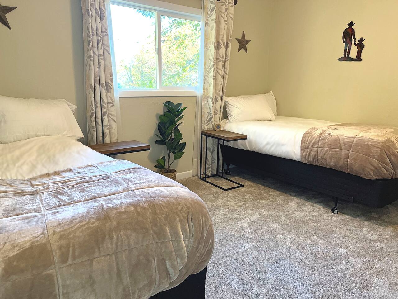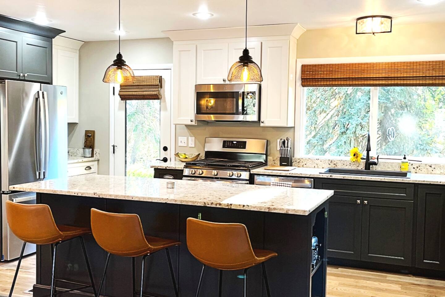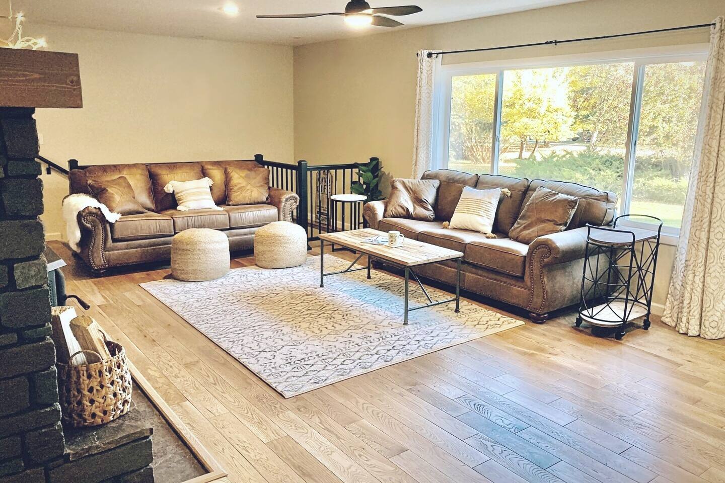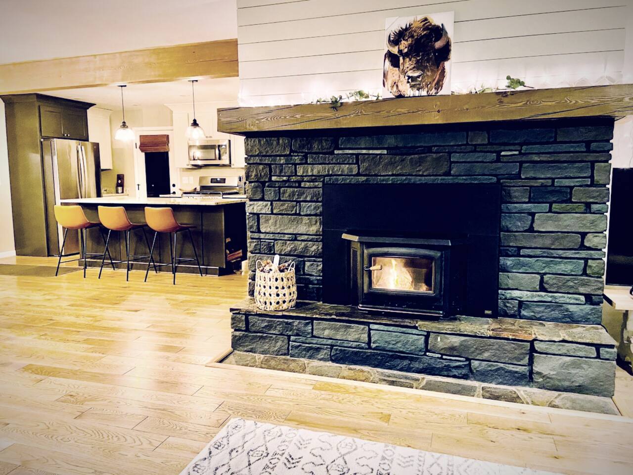 This home sits on a large 1.5 acres of private land. It is surrounded by a lush green lawn in the summer or a snowy winter wonderland in the winter. We even have our own resident deer family (please do not attempt to touch or feed them) too! Large home in the heart of Kalispell, only minutes away from downtown shopping, restaurants, bakeries, coffee shops and breweries. The main room features plenty of space for your family to gather, a large wood-burning fireplace, and a floor-to-ceiling picture window showcasing the beautiful views. The Home's Sleeping Arrangements: • Bedroom #1 - 1 King bed • Bedroom #2 - 1 Queen bed • Bedroom #3 - 2 single beds • Living Room - 1 Sofa Bed ** You can also rent this home (when owners are not using the downstairs guest house) as a 2 Story, 4 bedroom (7 beds) , 3 Bathrooms, 2 kitchens, and 2 Living rooms home at: airbnb dot com /h/glacierhomebase The open floor plan leads you from the living space into the dining area comfortably seating 6 and a 3-person kitchen island. The roomy kitchen is highlighted by the gas range and oven, large refrigerator, and microwave. After a long day of skiing at Whitesh Ski Resort stretch out beside a roaring fire, put your feet up, and tell stories from an exciting day. Central Location: Downtown Kalispell is walking distance, the ski resort is 23 miles, the town of Whitefish is 15 miles away, and Glacier National Park is 32 miles away. Professionally cleaned: Our cleaners have been trained in proper disinfection techniques and will deep clean the home before and after your stay. Centrally Located: • Historic Downtown Kalispell is within a short walking distance (less than 1 mile to many shops and eateries) • Flathead Lake is 10 miles away • Walk just 1/2 mile to Historic Conrad Mansion • Whitefish Ski Resort (Big Mountain) is 23 miles • Blacktail Ski Resort is 29 Miles • the Historic town of Whitefish is 15 miles away • Glacier Natl Park is 32 miles away At the end of a day on the hill, take off your gear and treat yourself to a a a hot chocolate on the comfy couch. In warmer months, make dinner on the barbecue and gather at the al-fresco dining area on the private patio in colder weather, everyone can cozy up to the fireplace inside. This home is perfect for two families with kids or a fun friendly getaway. After a day of skiing, warm up and relax by the fire for a fun, entertaining movie night. We worked hard for this little place in paradise and are sharing it at a reasonable price for guests. Your winter base-camp for everything Glacier country has to offer! This home is perfect for multiple families with kids or a fun friendly getaway. you will love being so close to Whitefish Ski Resort, Nordic Skiing, Sledding, Flathead Lake, Downtown Whitefish, Glacier National Park, and downtown Kalispell! The private home is situated in a quiet, family-friendly, neighborhood surrounded by tall pine trees and a LARGE surrounding yard. Location, location, location! The cozy 3 bedroom unit is located close to historic downtown Kalispell. Enter into a relaxing living space with plenty of couch space & cable TV. A fully stocked kitchen awaits for preparing meals Heated garage with boot dryer - the perfect place to dry your gear after a fun day skiing and playing in the snow! Parking - There is plenty of room for parking in the driveway (3 cars) and 1 space available for guests to park a car in the garage. Owners' car is stored in the other space in garage. Self-Check-ins - With self-check-in you won’t need to interact with anyone face-to-face. You have full access to home except for the owner's vacation unit downstairs. 1 space in the garage is for guests as well as the entire driveway, the owners of the home store a car in the other garage parking space. Sleeping Arrangements are: a king in the master, a queen in the 2nd bedroom, and two extra-long twin beds in the 3rd bedroom, and a sofa sleeper in the family room. Perfect for couples or medium-sized families. It's a quick walk to the historic downtown Kalispell, or a quick drive down to the Whitefish village, restaurants, bars, and nightlife. Either way, you are only minutes from all that Flathead County has to offer! When you book, we’ll send a link to our personal recommendation guide to help you plan your stay and make your trip amazing! We do not issue REFUNDS due to weather, air-quality (AQI), or driving conditions. Please purchase Trip Insurance that will cover such events. We like "Insure My Trip". A place to work or have meetings - This is the perfect place to come and enjoy everything the area of Kalispell/Whitefish/Glacier Natl Park has to offer. Is your office closed? If you’re unable to go into the office, our home is equipped with high-speed WiFi and has plenty of room for you to work comfortably. On warm evenings, you may spend most of your time on the private patio with wooded views. Retreat to the living room when it gets chilly and warm up by the fireplace. Relax on the roomy sofas and search through hundreds of options with the flat-screen TV. Or use the WiFi on your laptop to catch up on local news or to check out reviews of local restaurants. The adjacent dining room makes for a comfortable spot to gather for dinner, or grab a seat at the kitchen island for a quick breakfast. The kitchen will make cooking a breeze, as it is fully equipped and ready for family meals. • This rental is located in a residential neighborhood. Loud parties and disruptive behavior are not tolerated. This neighborhood is monitored by a 24/7 call service. • Quiet hours are 9pm-8am We expect that you respect the home as much as we do, and trust that you will leave it clean, less the towels and linens. Full access to home except for owner's vacation unit downstairs (sometimes owners will be in downstairs unit, you will have a completely private stay and will not be sharing any space with them except the garage. 1 space in the garage, the owners of the home s